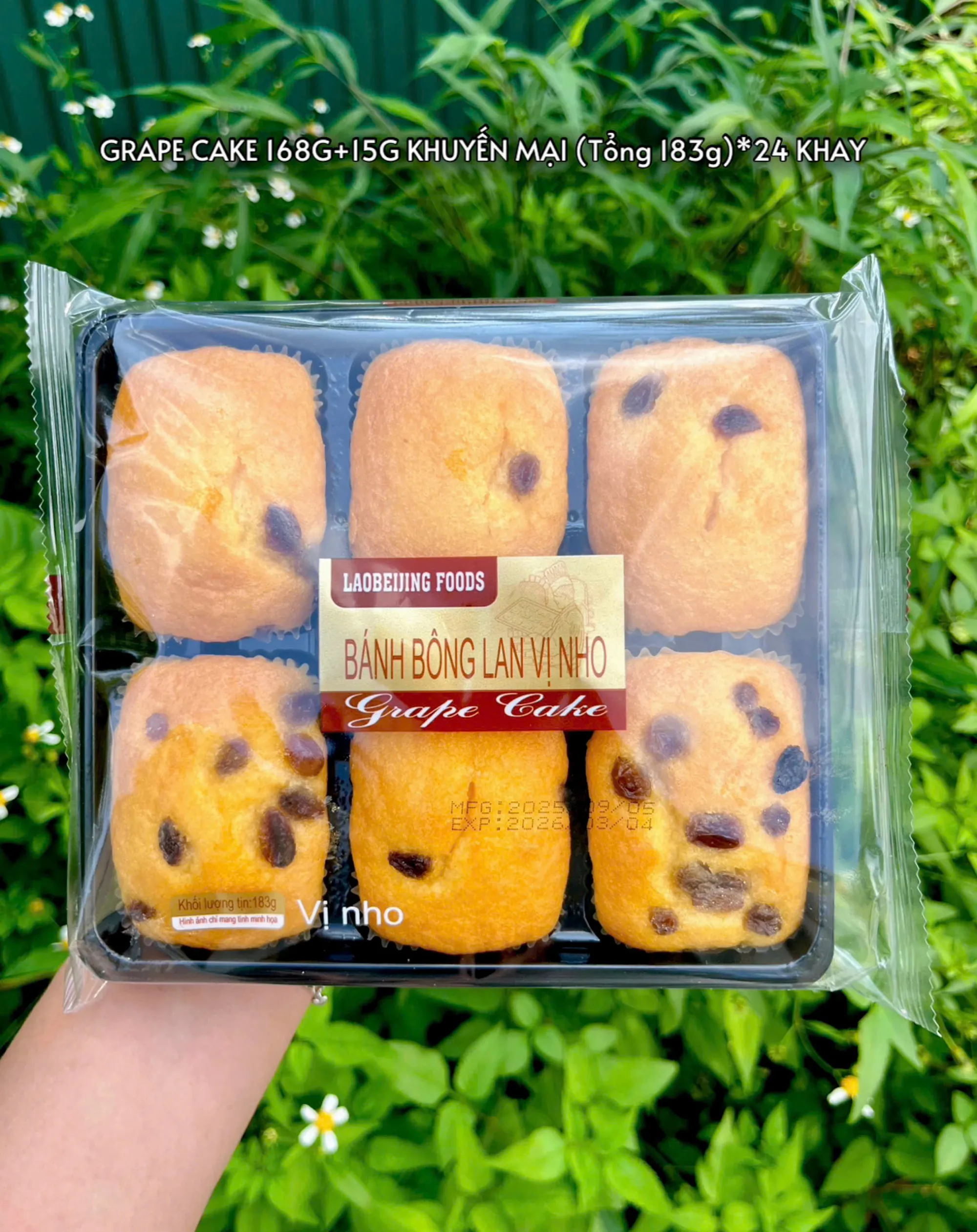 Nếu bạn đã quen thuộc với dòng bánh bông lan trứng truyền thống, hãy thử ngay một biến tấu đầy thú vị: Bánh bông lan vị nho LAOBEIJING FOODS (Grape Cake). Đây là sự kết hợp hoàn hảo giữa công thức bánh bông lan tinh tế và những hạt nho khô giàu dinh dưỡng.