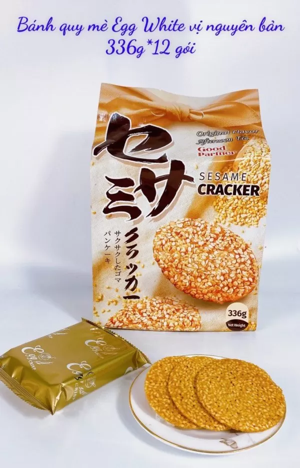 hành phần: Trứng, mè, đường, bột mì, dầu thực vật, muối, phụ gia thực phẩm (natri bicarbonate INS500(ii), ammonium bicarbonate INS503(ii)).