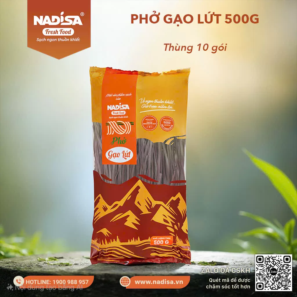 Phở gạo lứt Nadisa được sản xuất từ 100% gạo lứt chất lượng cao, kết hợp với nguồn nước tinh khiết lọc qua công nghệ RO. Nadisa áp dụng quy trình sản xuất khép kín đạt chuẩn ISO 22000 : 2018, trang bị hệ thống thiết bị máy móc hiện đại, tiên tiến để tạo ra các sản phẩm thực phẩm sạch ngon chất lượng cao, trong đó có phở gạo lứt Nadisa.