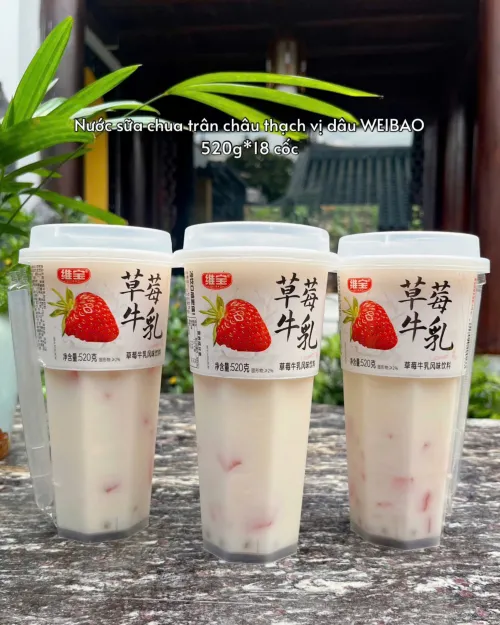 Nước sữa chua trân châu thạch vị dâu WEIBAO