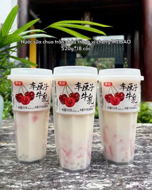 Nước sữa chua trân châu thạch vị cherry WEIBAO